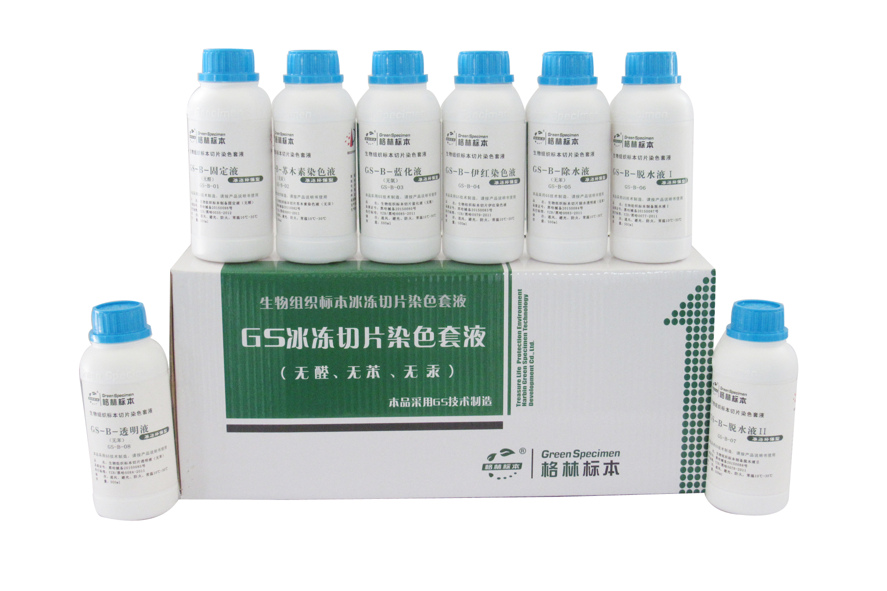 哈爾濱格林標本技術開發有限公司為了免除甲醛、二甲苯、氧化汞等對于病理工作者身體及環境的危害,本著健康、環保、優質的原則,多年來一直致力于環保病理試劑的科研和開發,經不斷探索、嘗試和實踐應用,***終研發出病理專用環保試劑“GS組織樣本制備及切片染色系列試劑”,該試劑不含甲醛、二甲苯、氧化汞等對人身和環境有極大危害的有毒化學試劑,其功效完全優于目前大量使用的以甲醛、二甲苯為主的傳統病理試劑,是完全可以替代傳統有毒試劑并具有強烈革命色彩的全新環保試劑產品。
